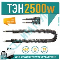ТЭН 2500W, черн, L400мм, оребренный, межосевое расстояние 70-75мм, подвижный воздух, Ф2, 220V, 06.252