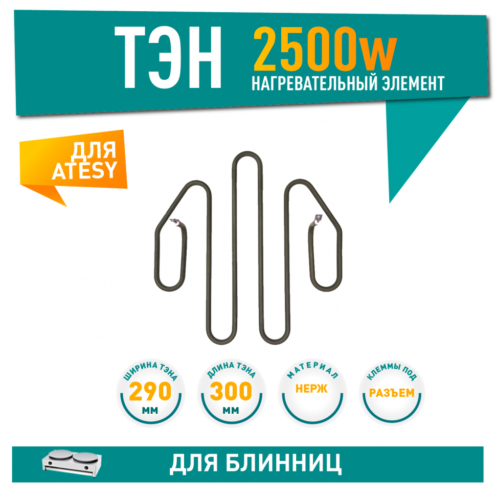 ТЭН 2500Вт для блинниц ATESY (Атеси) и других совместимых брендов.