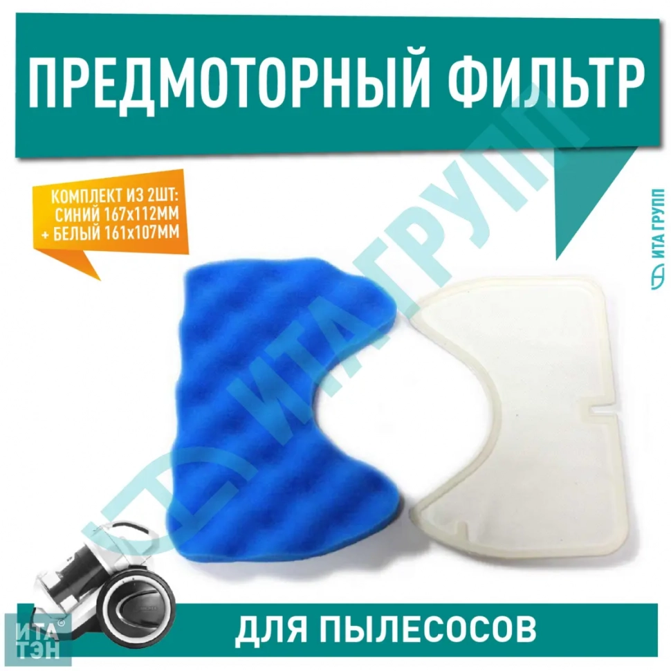 Комплект: предмоторный фильтр, без отверстия, бел. 161×107мм + син. 167×112мм
