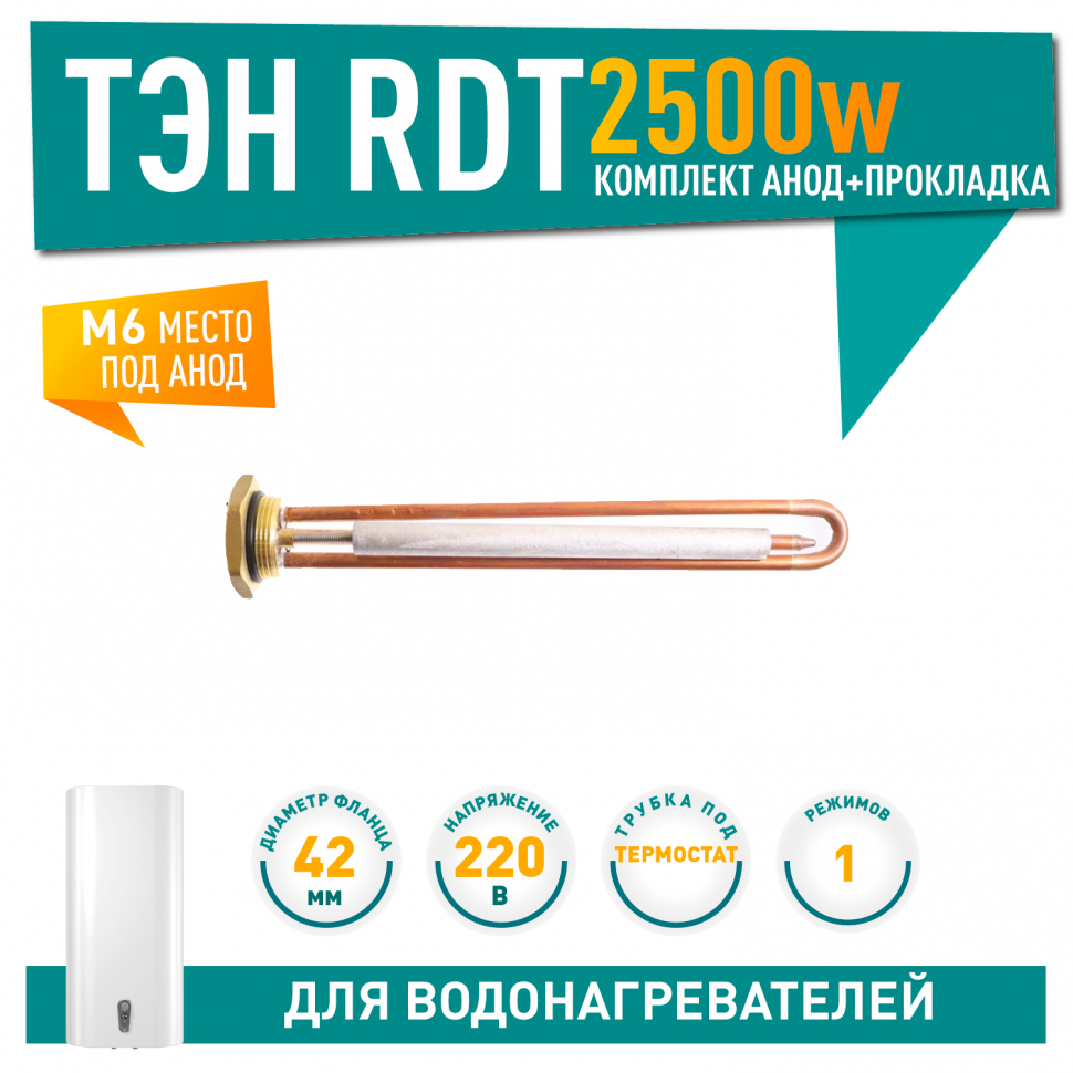 Аналоги товара Комплект ТЭН 2,5кВт (2500Вт) RDT, резьбовой 42мм для Ariston, De Luxe, Real, Thermex + прокладка + анод, 20748